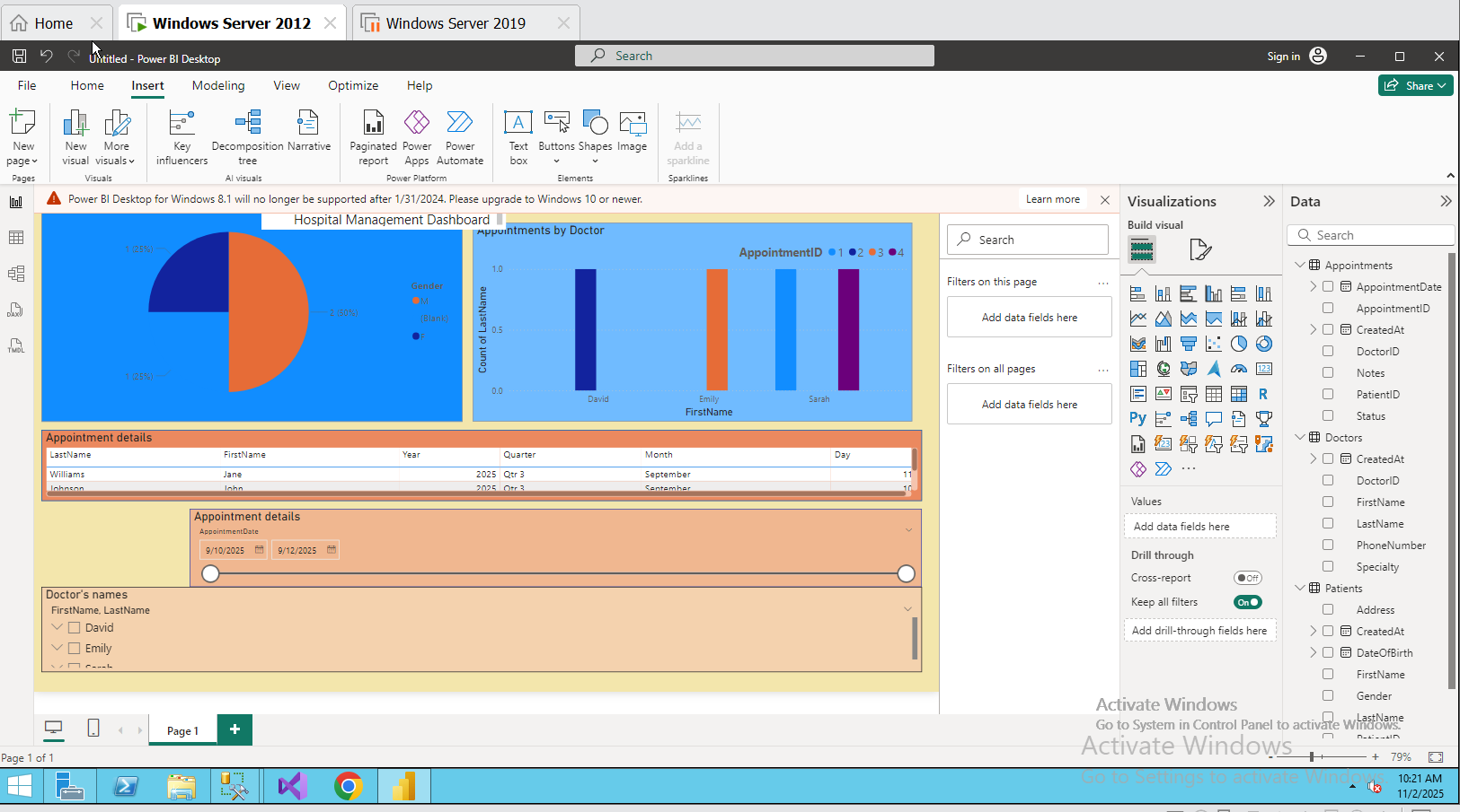 View on GitHubDesigned an interactive Power BI dashboard for hospital data visualization, showing appointment trends, doctor performance, and patient demographics.